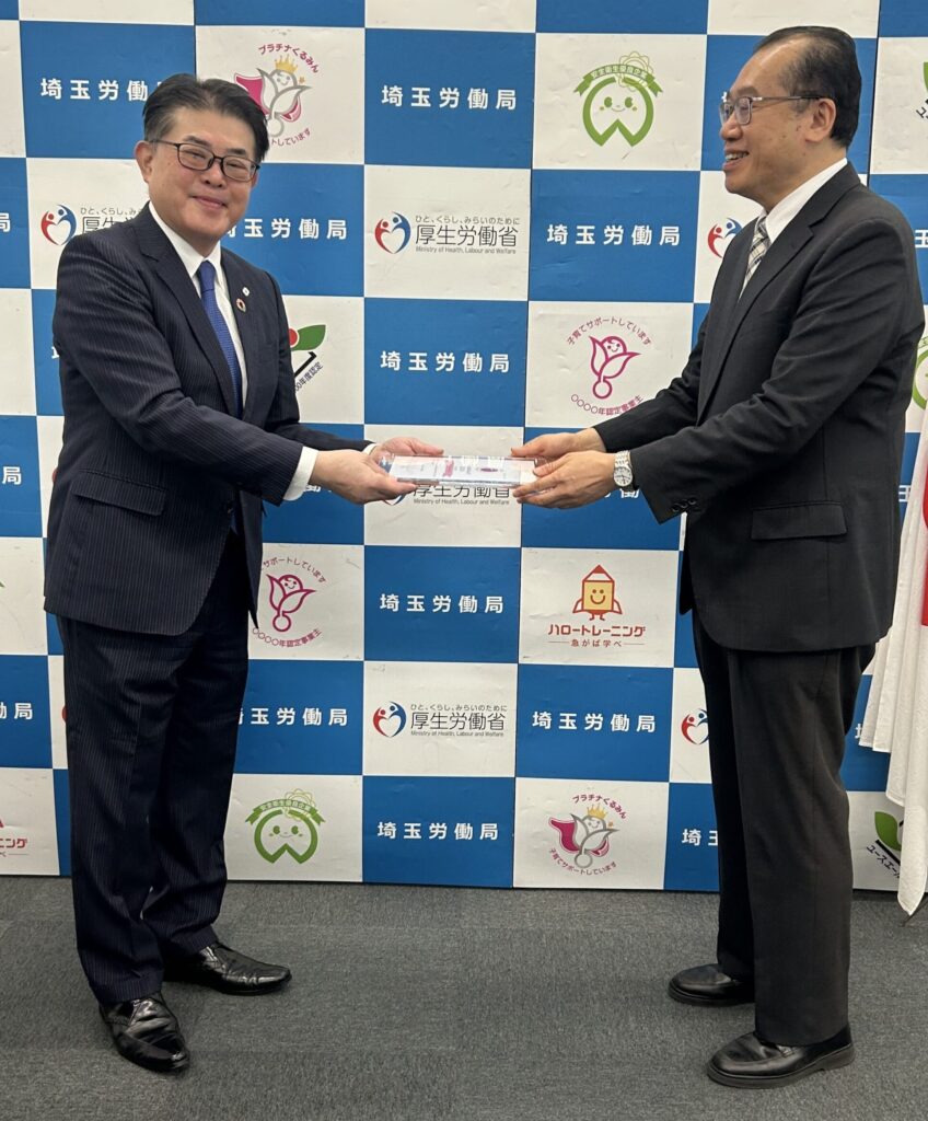 上記写真:板垣社長(左)と埼玉労働局長(右)